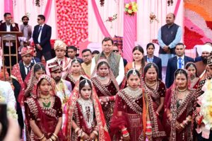 देहरादून 26 फरवरी। मुख्यमंत्री पुष्कर सिंह धामी ने बुधवार को खटीमा में गौरी शंकर महादेव मंदिर, भ्रह्म कालोनी एंव आरपी पब्लिक स्कूल, मेलघाट रोड में महाशिवरात्रि के अवसर पर सामूहिक विवाह कार्यक्रम में शामिल होकर नव दम्पतियों को आशीर्वाद व बधाई देते हुए उनके नव दाम्पत्य जीवन के लिए शुभकामनाएं दी। इस दौरान दोनों स्थानों पर कुल 50 जोड़ो विवाह सम्पन्न हुआ।